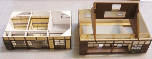 また秩父の資料画像でお茶濁し・・・・その前に、農家のサイズ比較。右が1/80既製品。左が1/90自作品で、部屋割り変更して奥行きが縮小されてます。左右はほとんど変わりませんですので、既製品も少し小さめだったのかも?です。実際の寸法そのままですと以…